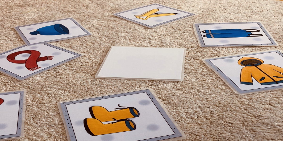 Im Kreis liegen die 8 Bildkarten in der richtigen Reihenfolge. Ein Kind geht in die Mitte und die anderen schliessen ihre Augen. Das Kind in der Mitte vertauscht nun zwei Karten. Dann spricht es: "Winterkleider-Gnusch, welli Karta sind vertuscht?". Die anderen Kinder öffnen ihre Augen und überlegen, wo der Fehler liegt.