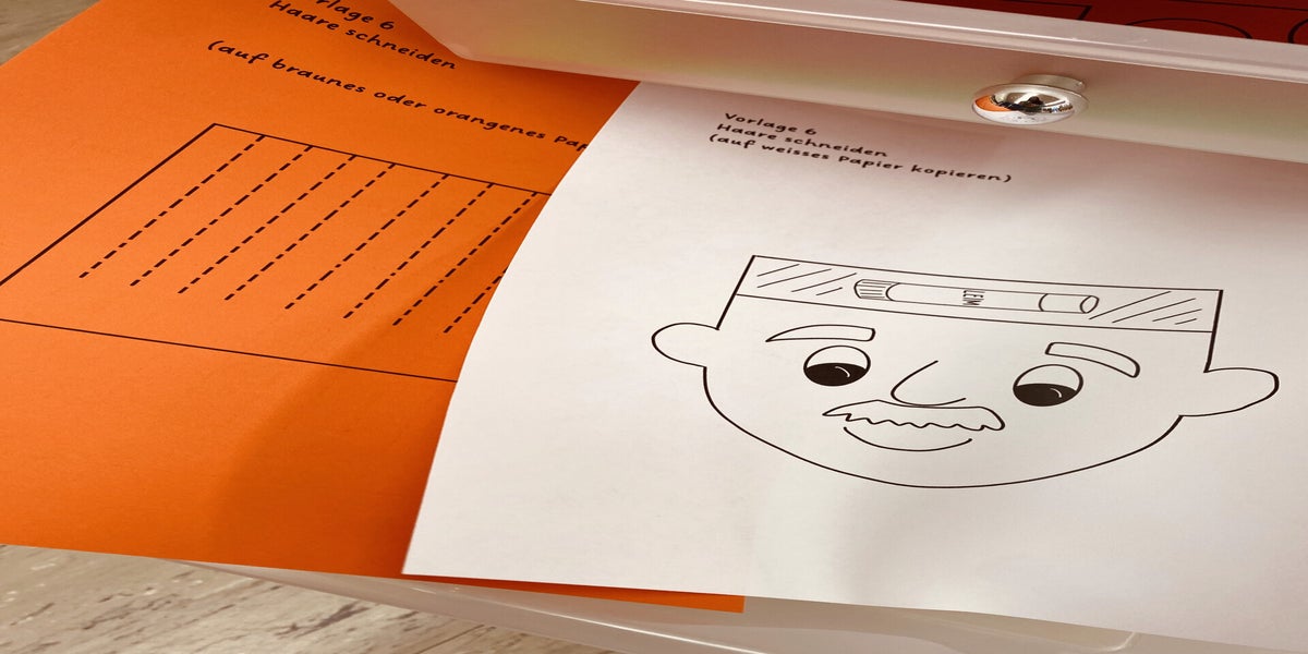 Aufgabe 3: Mit Papierstreifen eine Decke für Wanja gestalten.