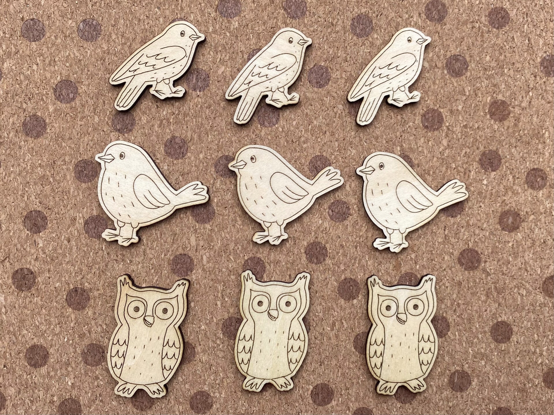 Diese kleinen herzigen Vögel sind aus Sperrholz und können für verschiedenste Aufgaben, Aktivitäten oder Bastelarbeiten genutzt werden. In einem Set sind 9 Vögel (je 3) enthalten.