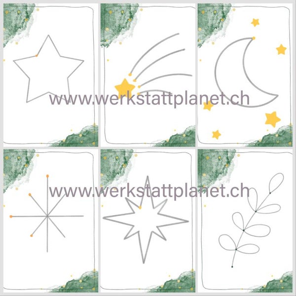 Dieser Download enthält 25 einfache Bilder zum Advent, mit denen die Graphomotorik geübt werden kann. Einfache Formen werden auf der grauen Linie nachgezeichnet.